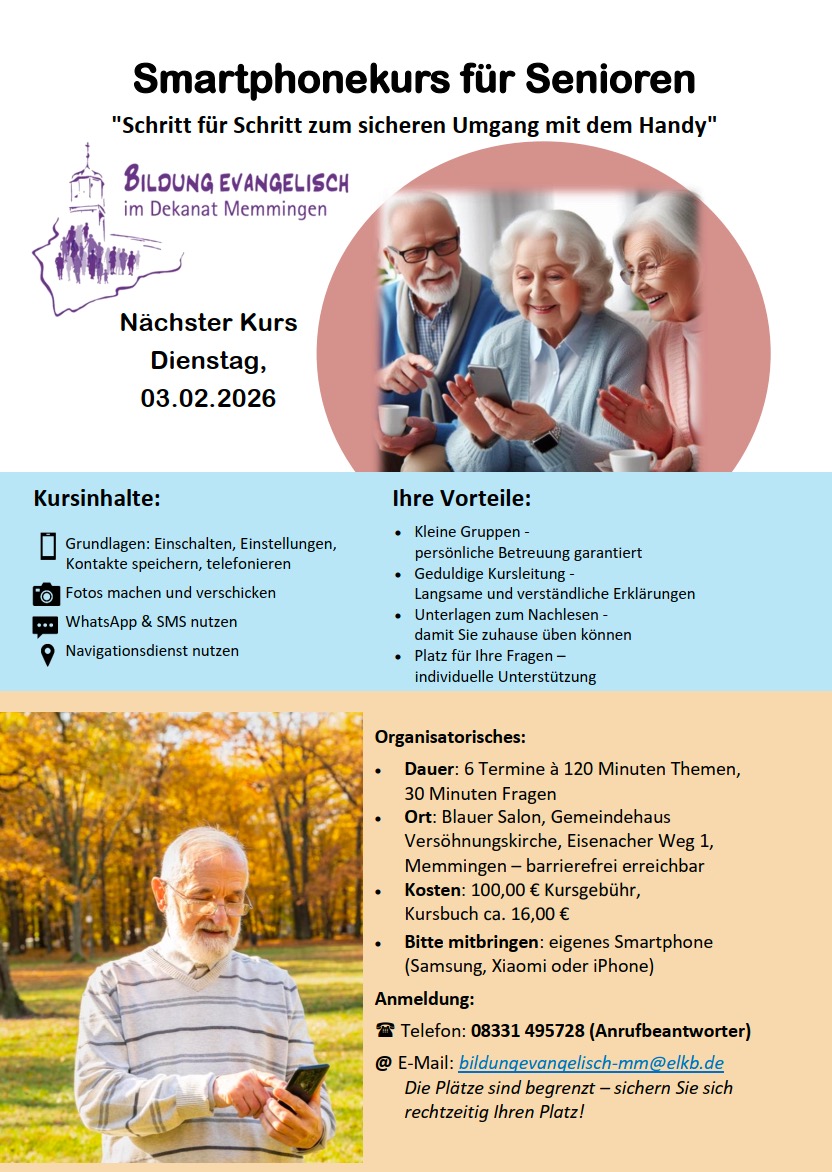 Wir freuen uns, dass Sie die Webseite von BILDUNG EVANGELISCH im Dekanat Memmingen besuchen. Mehr über die evangelische Bildungsarbeit im Dekanat Memmingen erfahren Sie unter "Über uns" unten auf dieser Seite.